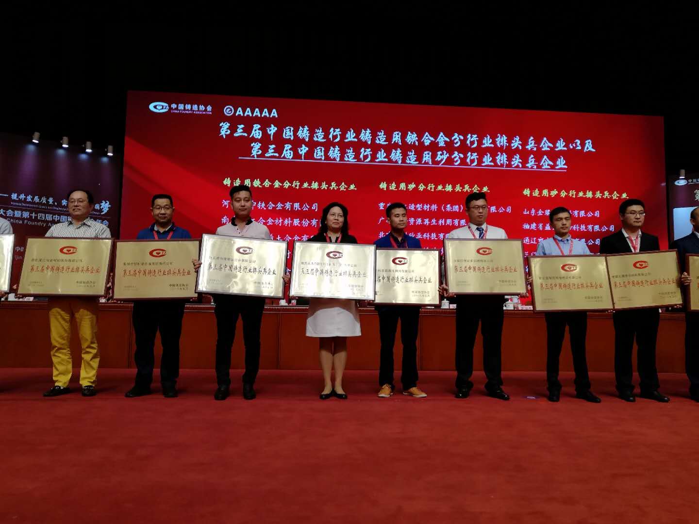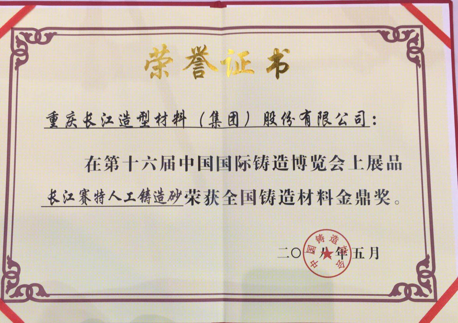 长江材料在本次铸造展上荣获第三届中国铸造企业排头兵企业,长江赛特人工铸造砂荣获全国铸造材料金鼎奖。