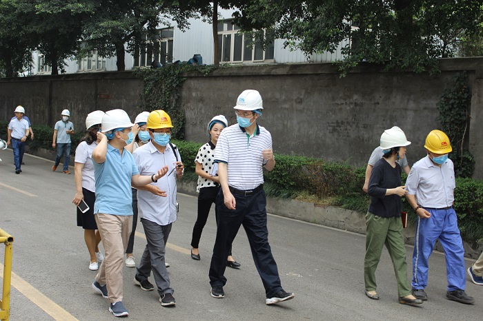 2020年6月11日上午,国家生态环境部专家来到重庆片区同兴工厂调研汽车铸造型砂的综合利用情况。长江材料集团董事长熊鹰在生产现场为专家们介绍铸造废砂再生循环利用的生产情况。重庆市固体废物管理中心主任、北碚区生态环境局副局长陪同。