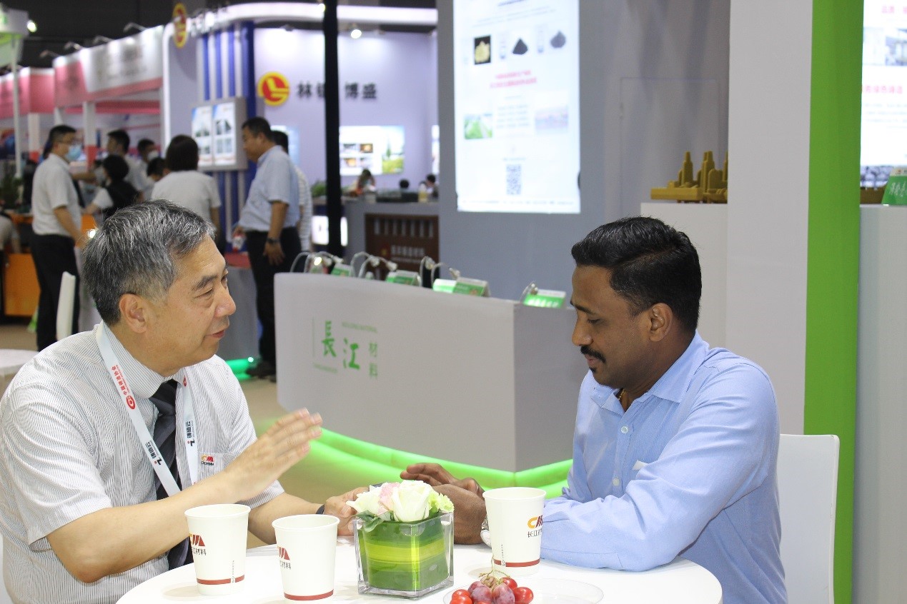 来宾在长江材料展台商谈咨询