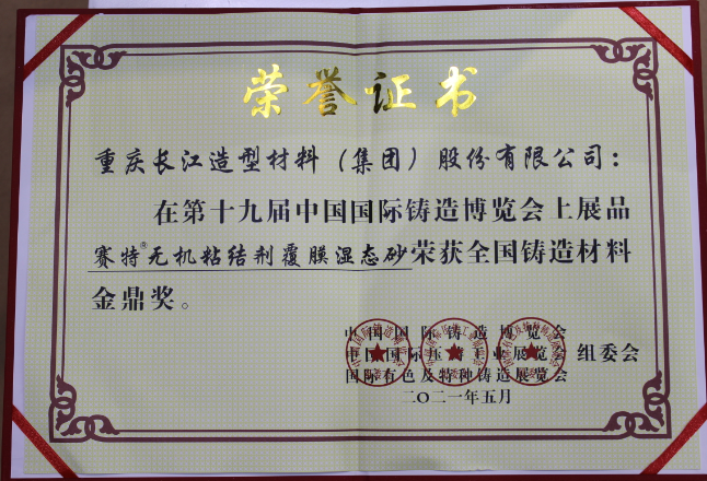 长江赛特®无机砂荣获“全国铸造材料金鼎奖