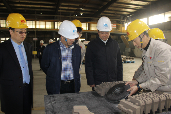 节后上班的第二天上午9点20左右,北碚区区委汪书记和黄区长一行来到重庆长江公司,了解企业生产经营情况,特别是2017年企业经营增长点。书记和区长仔细听取了集团公司总经理熊杰、副总经理韩跃的汇报,并对不清楚的问题进行了详细了解。书记和区长来到公司研发中心和制芯车间,对长江材料的技术研发能力和无机湿态覆膜砂、压裂支撑剂产品很感兴趣。