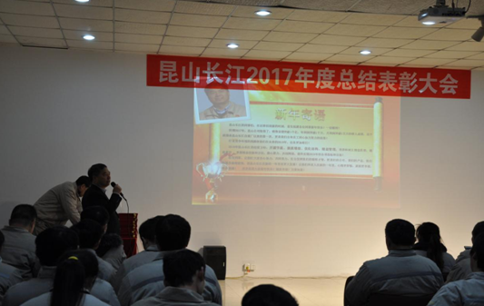 ; 在2018年1年27日,昆山长江全体员工聚在一起回顾2017,展望2018。2017年是难忘的一年,满怀着责任与梦想,承载着收获和喜悦。昆山董事长代表公司对全体员工表示关心和感谢,并向长期在幕后为公司的发展事业默默奉献的所有员工家属致以崇高的敬意和诚挚的祝福。